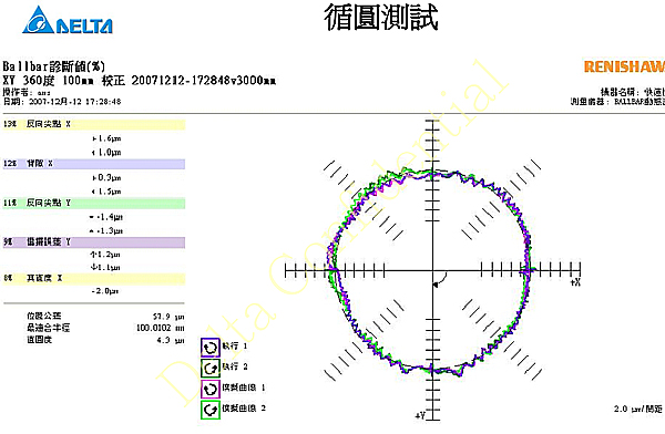 現(xiàn)在來看看應用臺達B2伺服實際加工時偵測出的實際效果,如下圖: