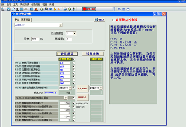 利用臺達B2伺服強大的伺服調(diào)機軟件,方面增益的調(diào)整與設置。